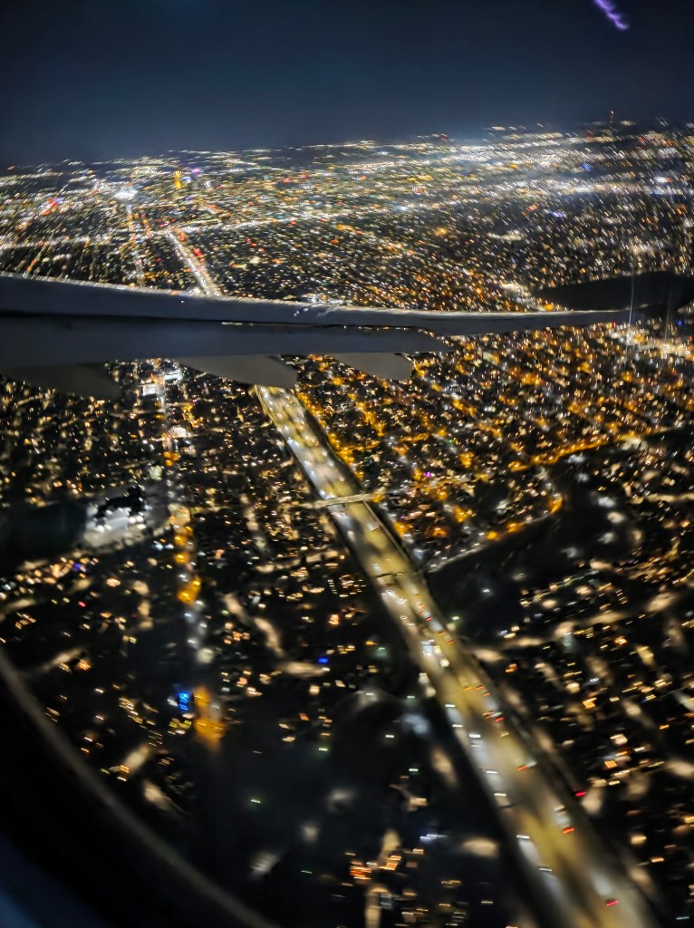 I look at the lights below the plane. I trace the grid between the skyscrapers and the river and refuse to accept that the tiny speck of light from my house is no brighter than all of the surrounding specks. This should be the trip of a lifetime, but it hurts. This isn’t the headspace I thought I’d be in for this flight. I hoped I’d have my wife and son by my side for my first international trip to promote my work, but international travel isn’t advised while she waits to receive her US citizenship (I can already see the bloodstains forming on her hands). Even worse, the afternoon I had planned got interrupted. Instead of going on a walk to the park to spend our last bit of time together before I leave for about 12 days, I wound up on my hands and knees scrubbing the basement floor.